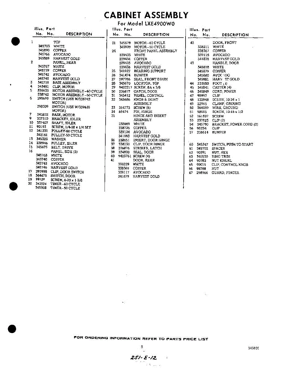 Parts for Whirlpool LXE4900W0: 03 - Section Parts