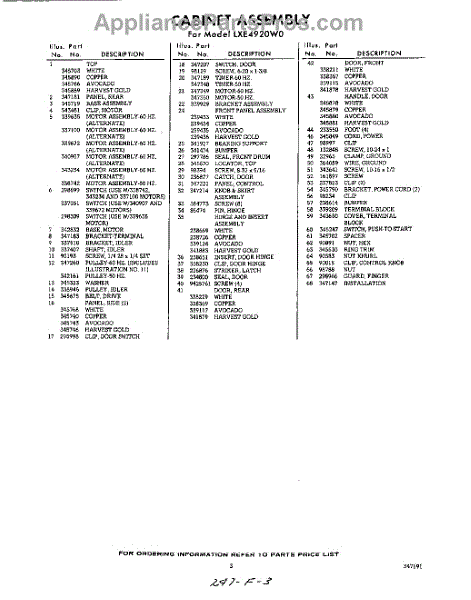 Parts for LXE4920W0