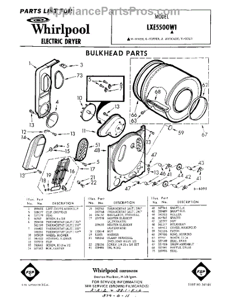Parts for Whirlpool LXE5500W1: 01 - Section Parts