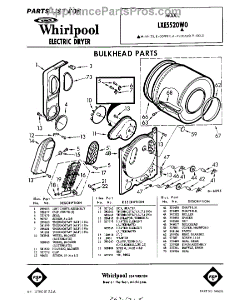 Parts for Whirlpool LXE5520W0: 01 - Section Parts