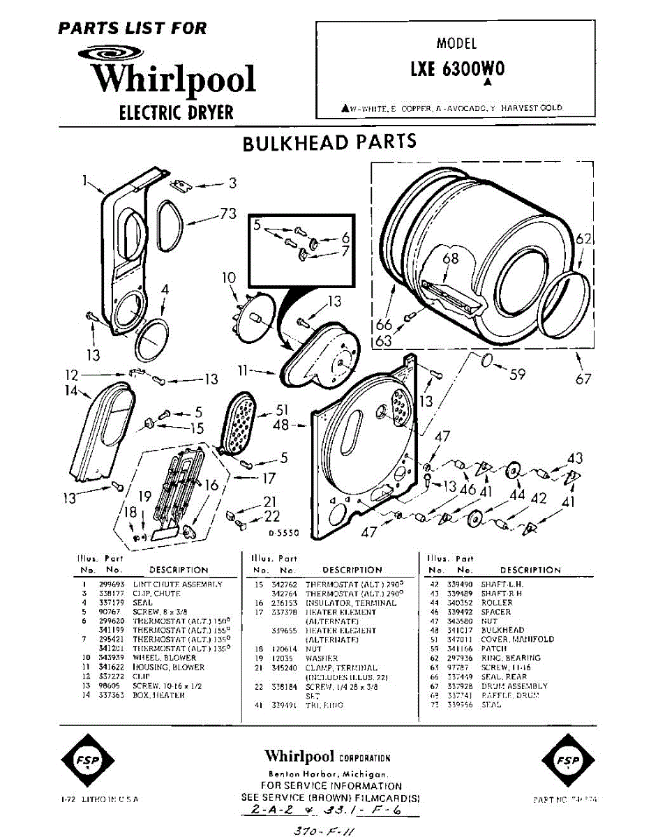 Parts for Whirlpool LXE6300W0: 01 - Section Parts