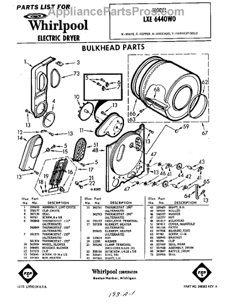 Parts for Whirlpool LXE6440W0: 01 - Section Parts