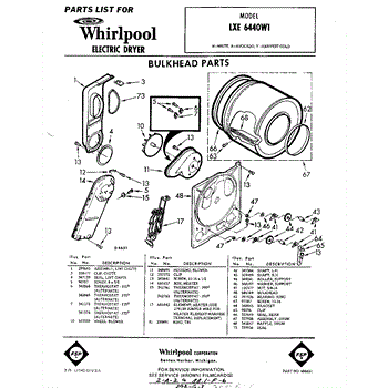 Parts for Whirlpool LXE6440W1: 01 - Section Parts