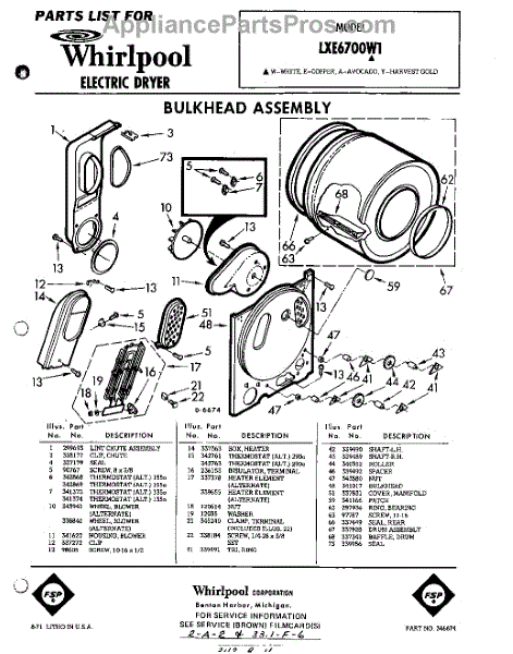 Parts for Whirlpool LXE6700W1: 01 - Section Parts