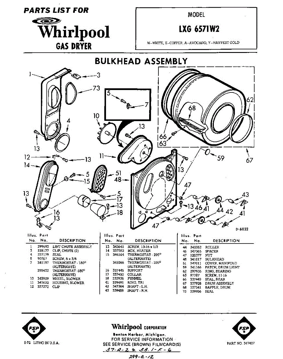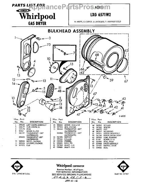 Parts for Whirlpool LXG6571W2: 01 - Section Parts