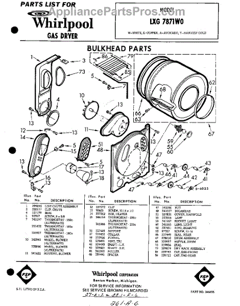 Parts for Whirlpool LXG7871W0: 01 - Section Parts