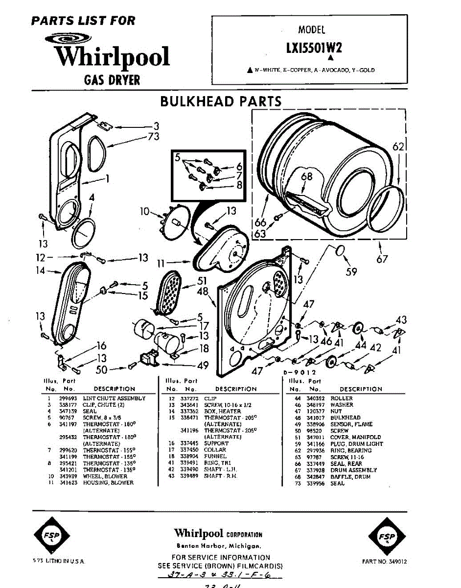 Parts for Whirlpool LXI5501W2: 01 - Section Parts