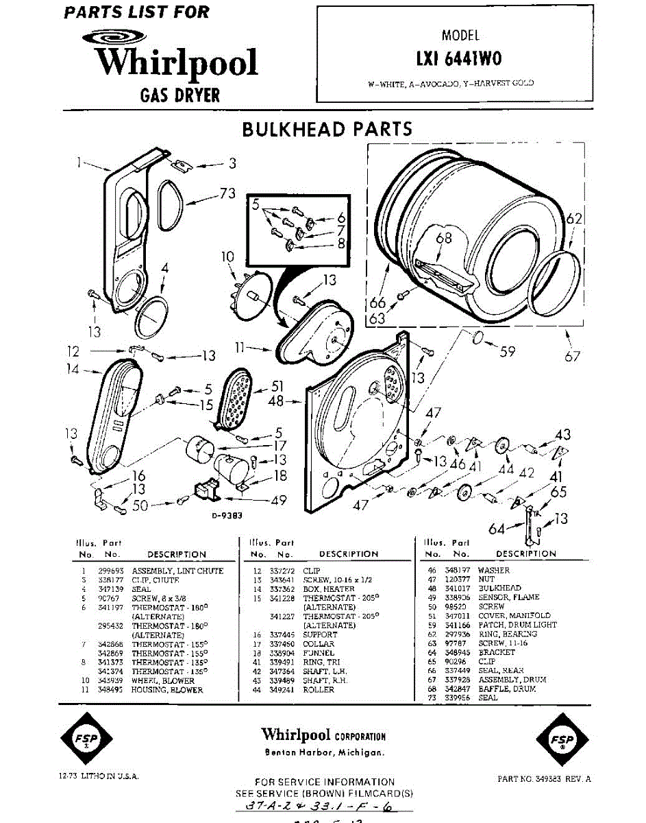 Parts for Whirlpool LXI6441W0: 01 - Section Parts