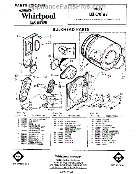 Parts for Whirlpool LXI6701W2: 01 - Section Parts