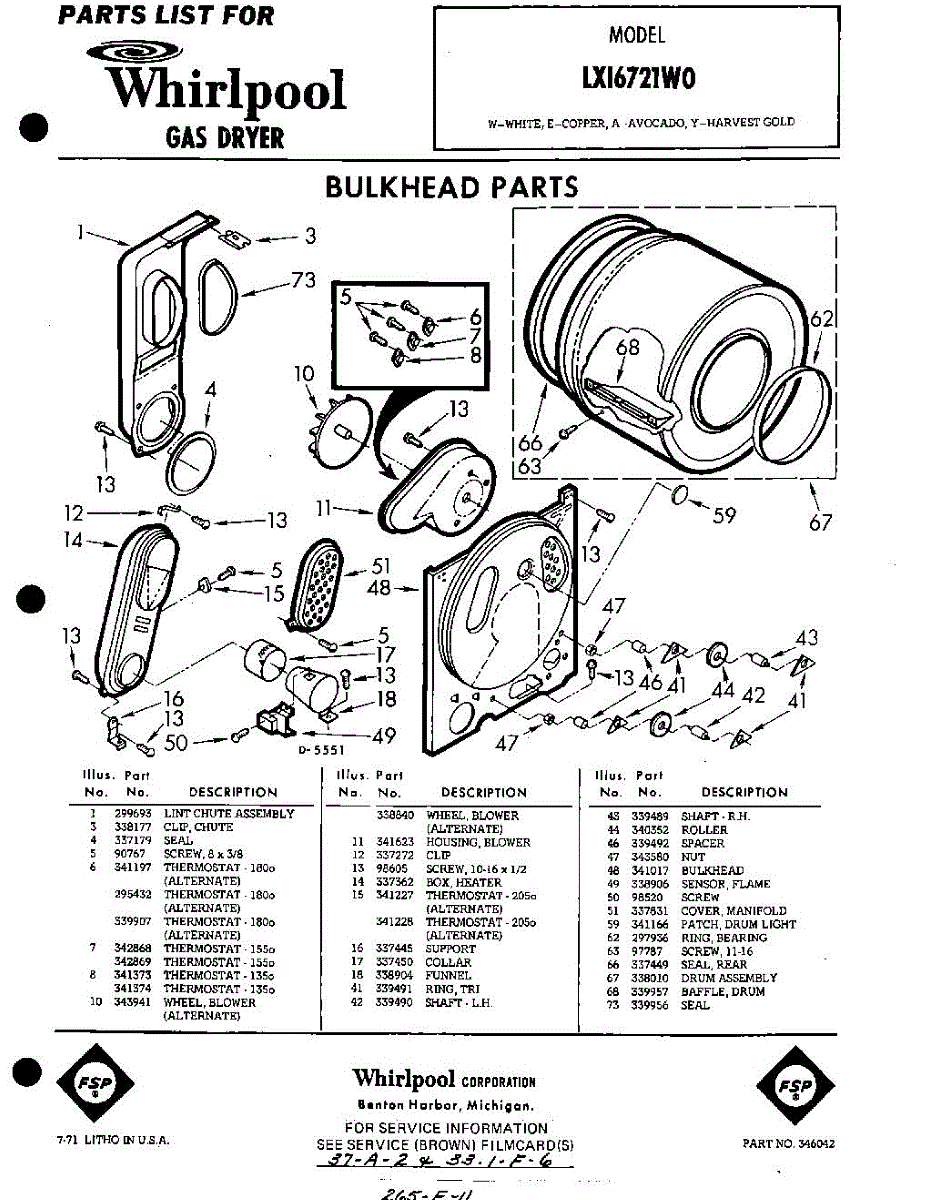 Parts for Whirlpool LXI6721W0: 01 - Section Parts
