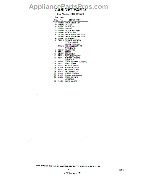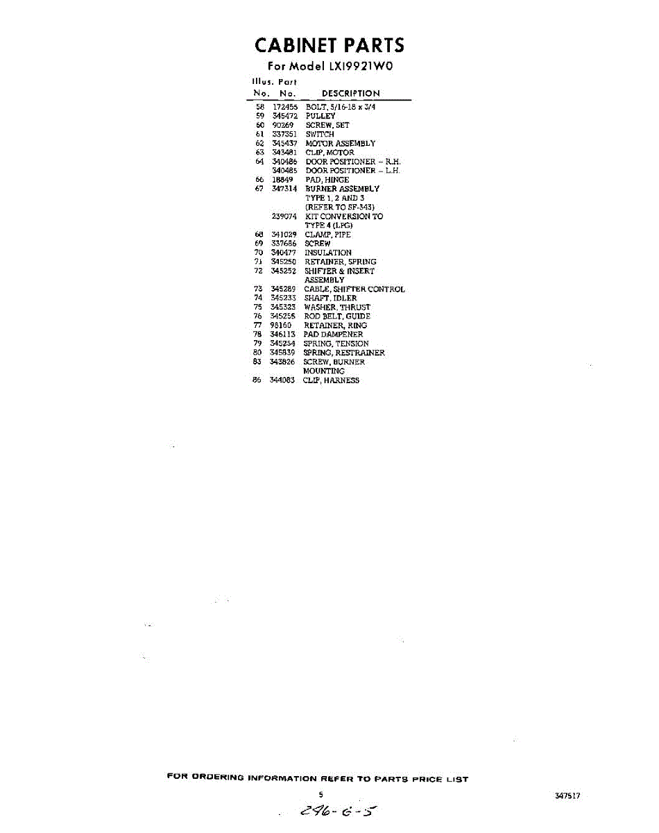 Parts for Whirlpool LXI9921W0: 05 - Section Parts