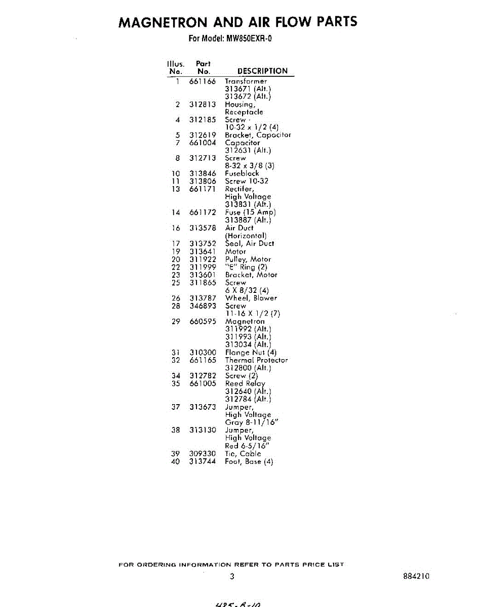 Parts for Whirlpool MW850EXR0: 03 - Section Parts