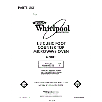 Parts for Whirlpool MW8650XS4: 01 - Section Parts