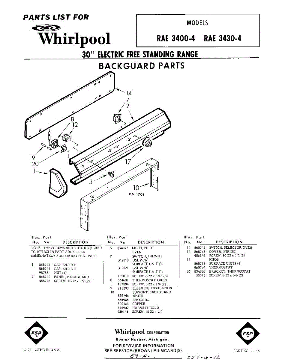 Parts for Whirlpool RAE3400W4: 01 - Section Parts