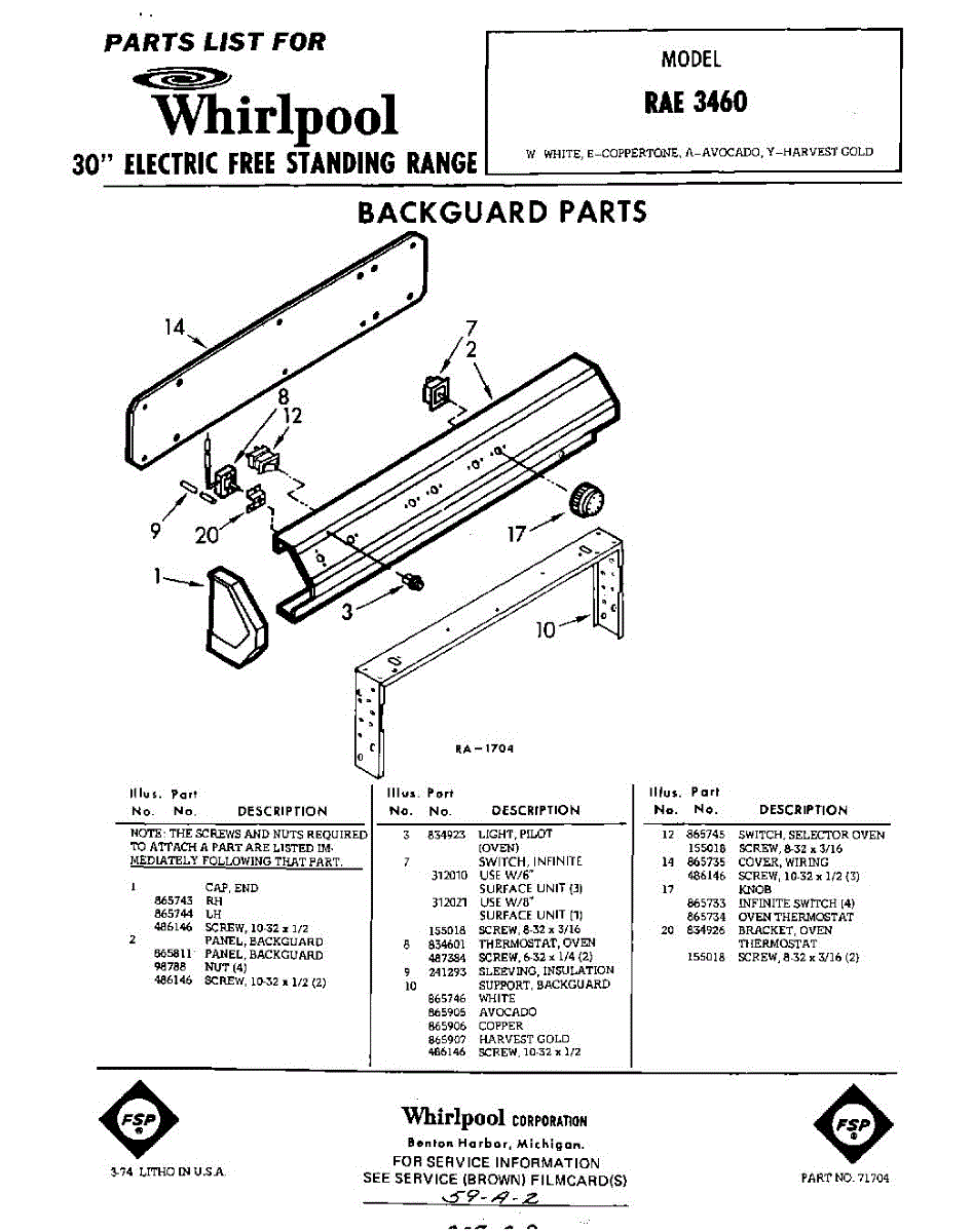 Parts for Whirlpool RAE3460: 01 - Section Parts