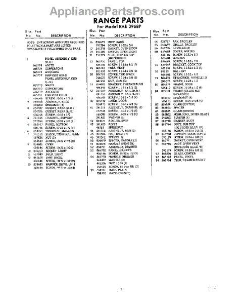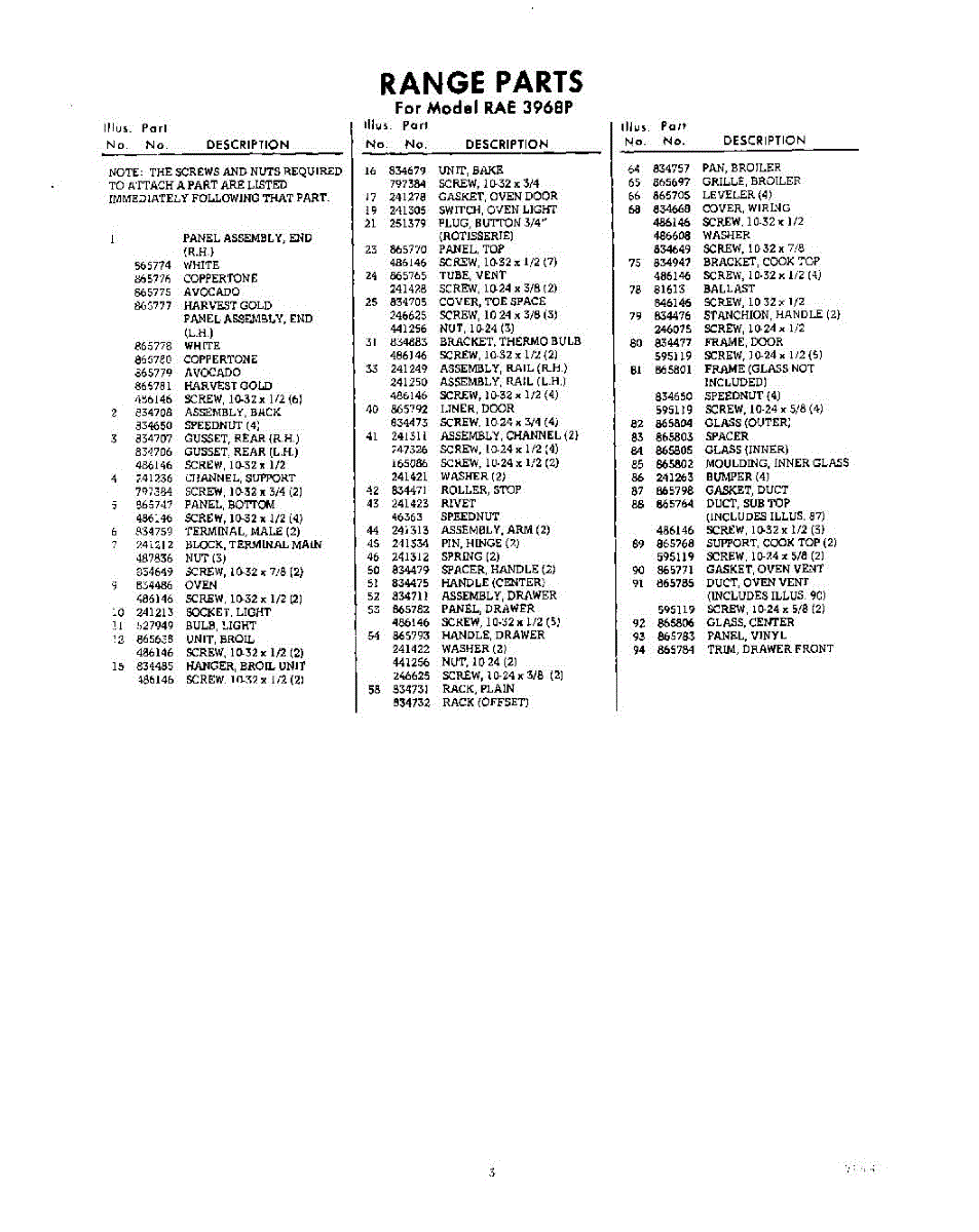 Parts for Whirlpool RAE3968P: 03 - Section Parts