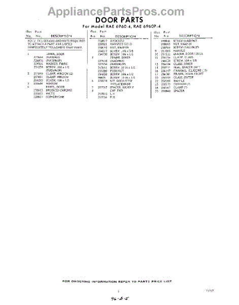 Parts for Whirlpool RAE69604: 05 - Section Parts