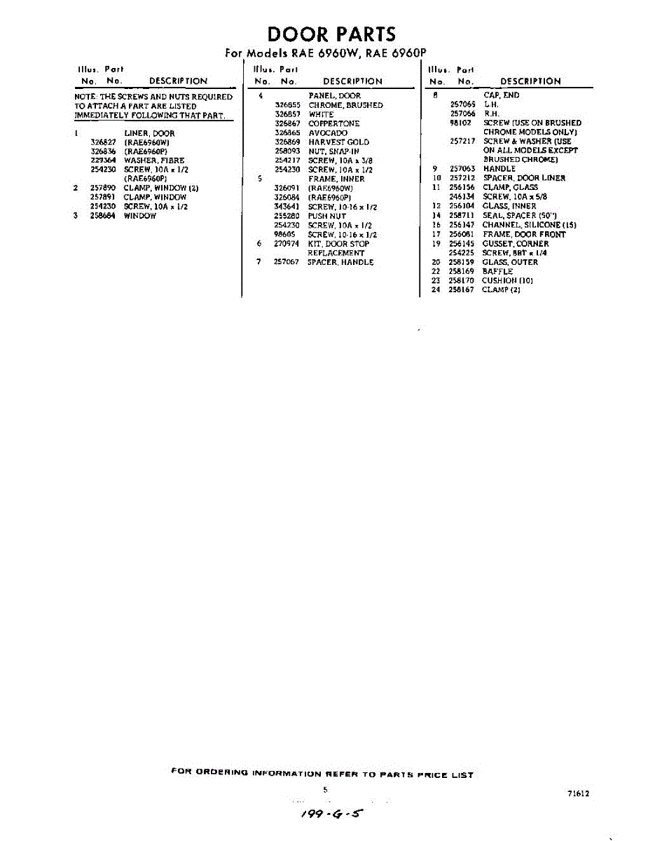 Parts for Whirlpool RAE6960W: 05 - Section Parts
