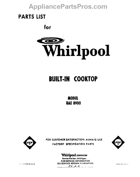 Parts for Whirlpool RAE8900: 01 - Section Parts