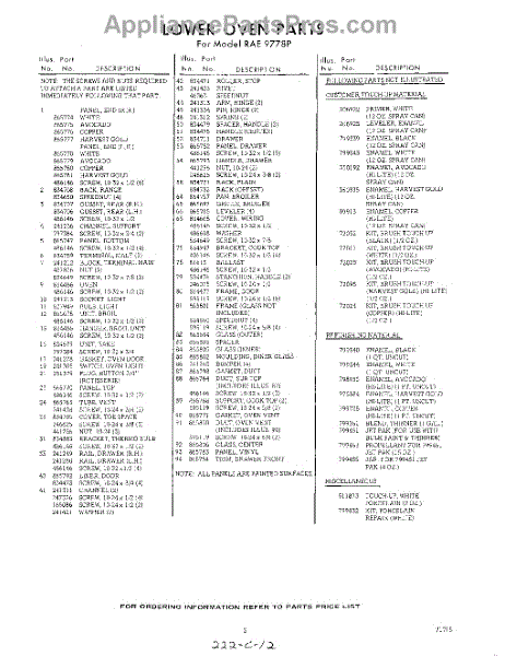 Parts for Whirlpool RAE9778P: 03 - Section Parts