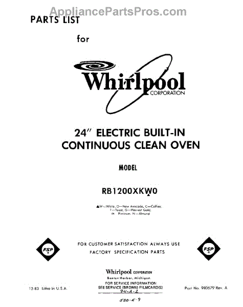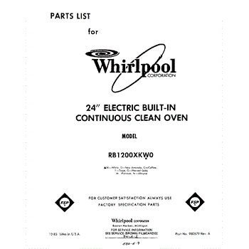 Parts for Whirlpool RB1200XKW0: 01 - Section Parts