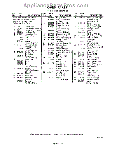 Parts for Whirlpool RB2200XKW1: 05 - Section Parts
