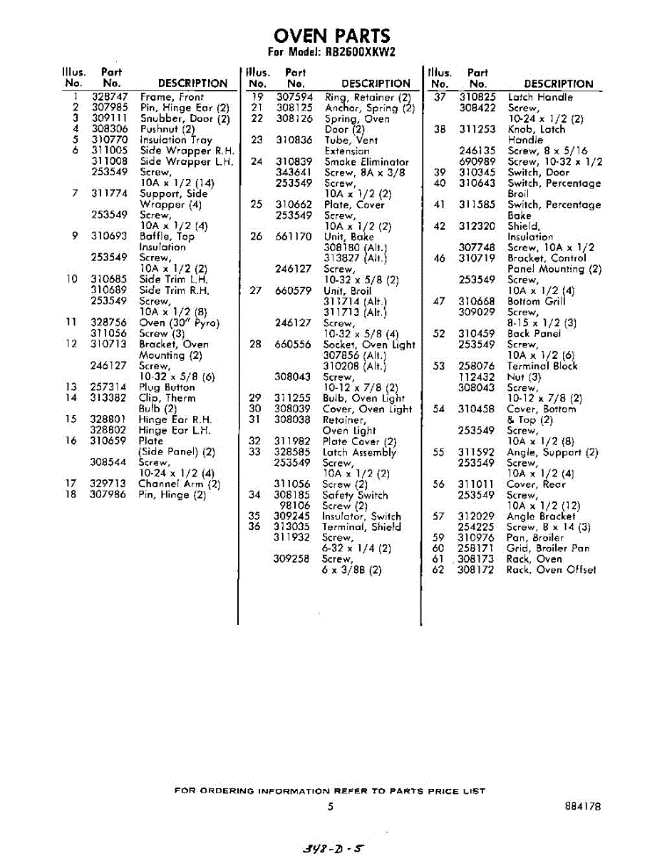 Parts for Whirlpool RB2600XKW2: 05 - Section Parts