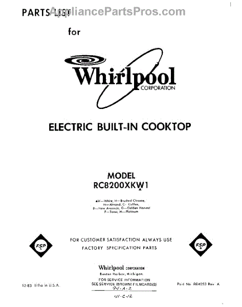 Whirlpool Cooktop Parts
