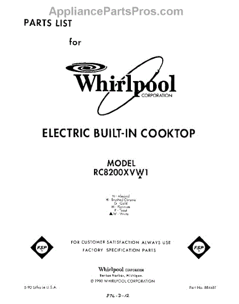 Whirlpool Cooktop Parts