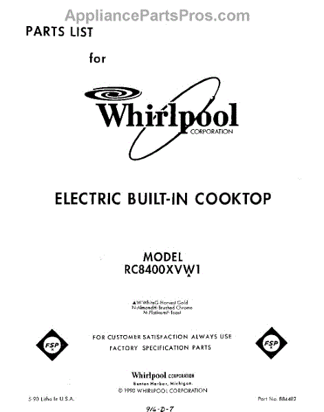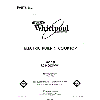 Parts for Whirlpool RC8400XVW1: 01 - Section Parts