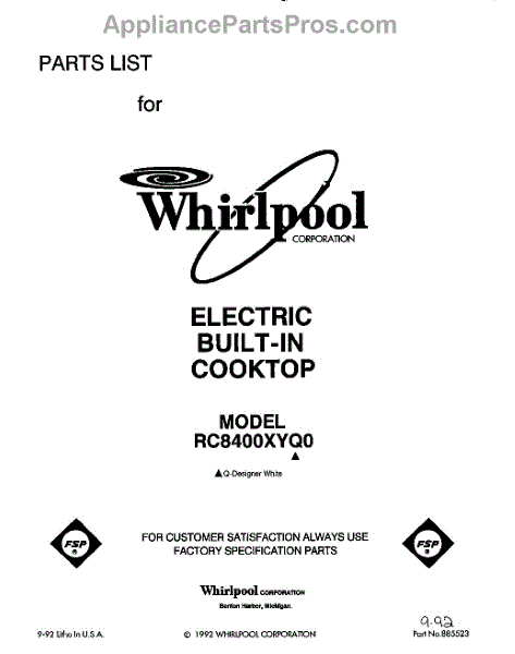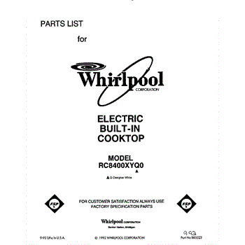 Whirlpool Cooktop Parts