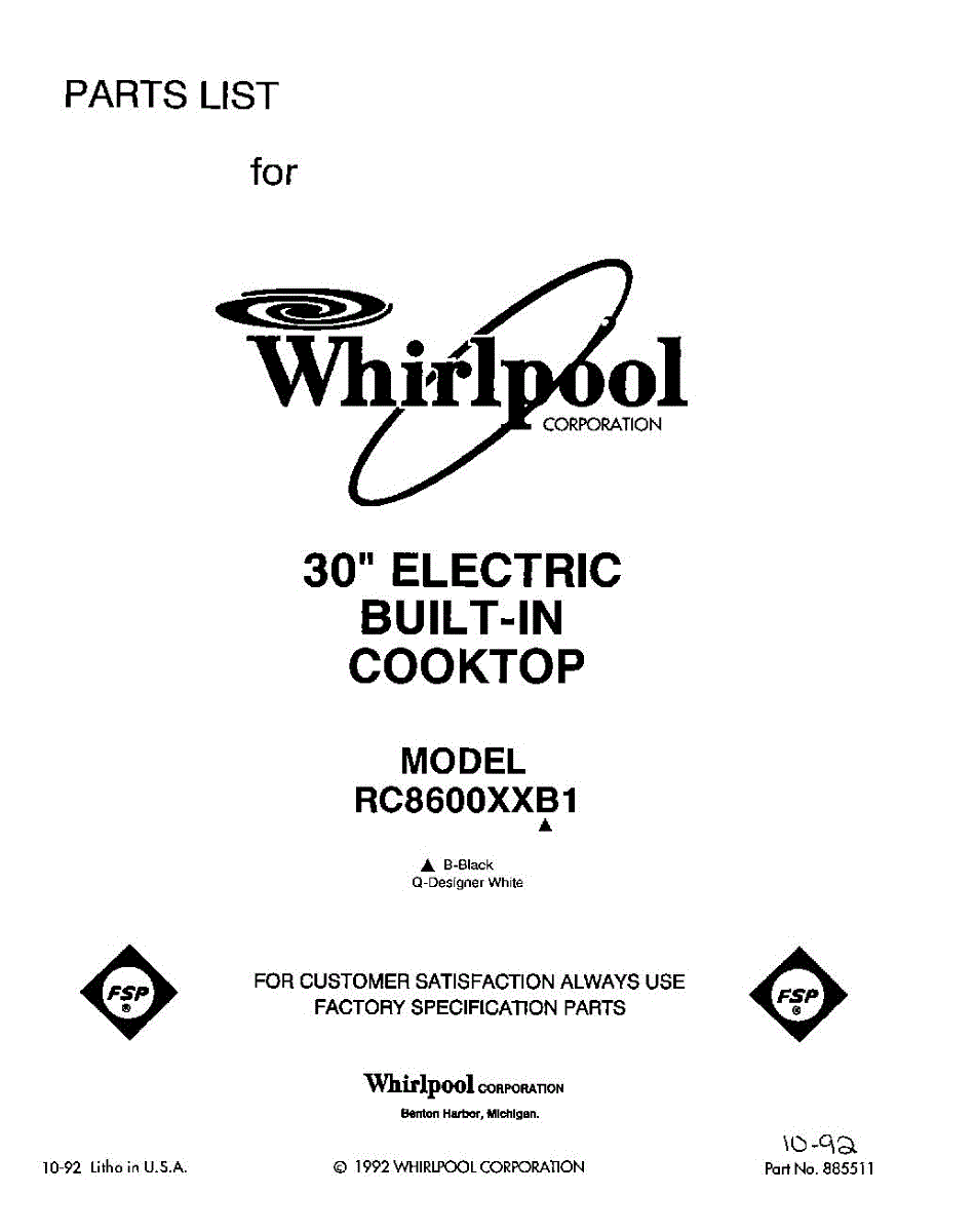 Parts for Whirlpool RC8600XXB1: 01 - Section Parts