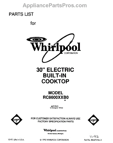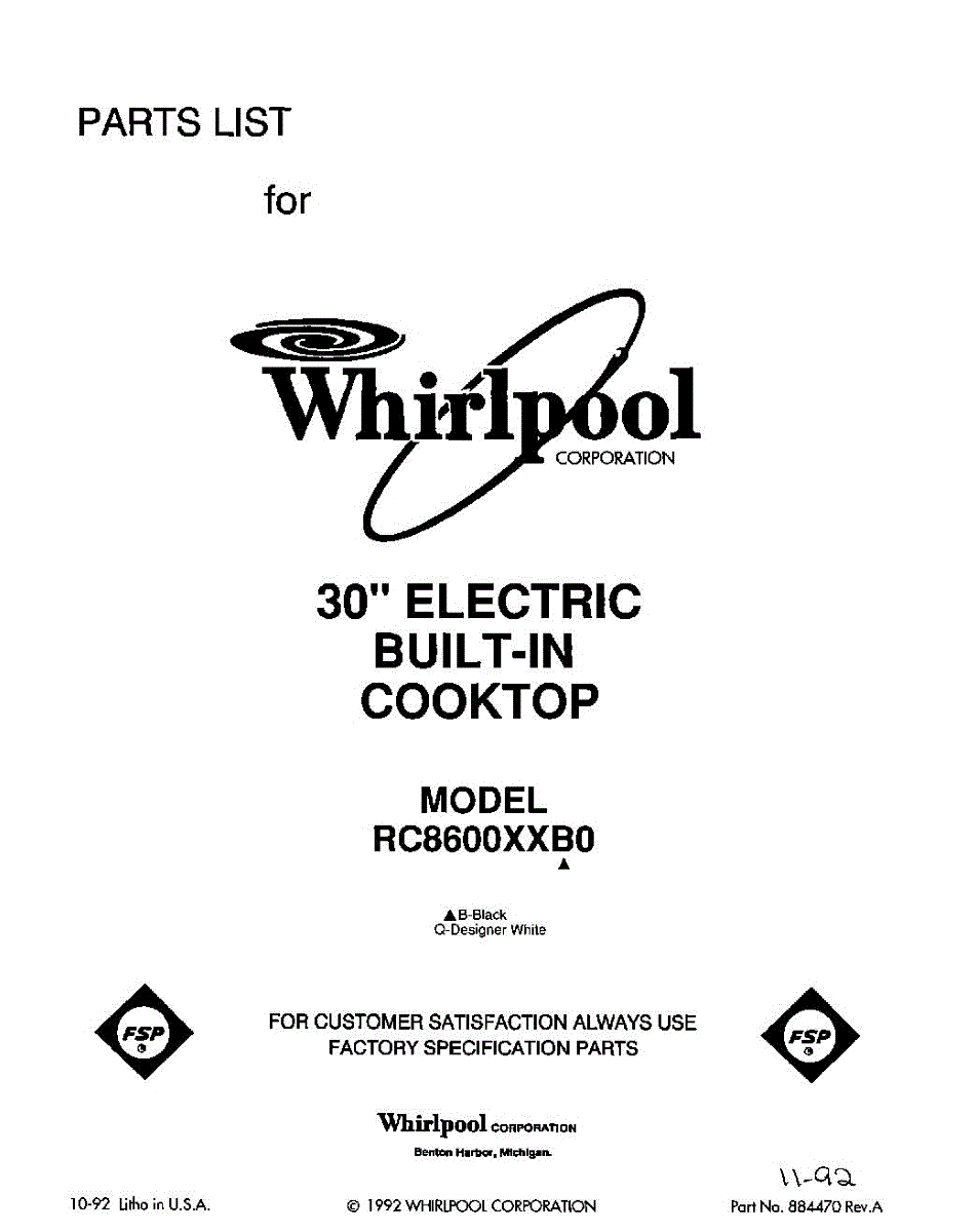 Parts for Whirlpool RC8600XXW0: 01 - Section Parts