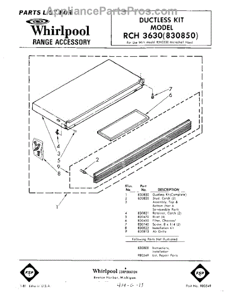 Parts for Whirlpool RCH3630: 01 - Section Parts