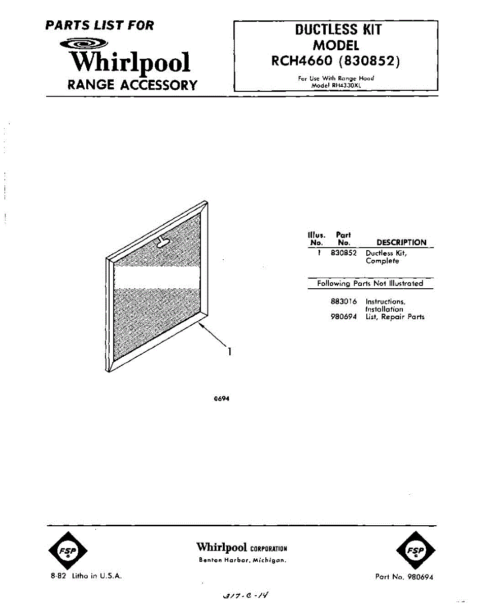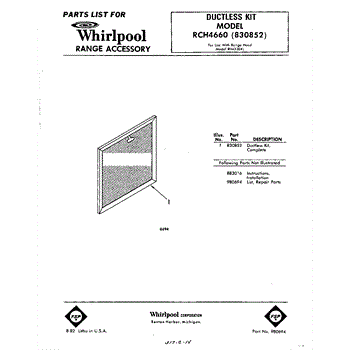 Parts for Whirlpool RCH4660: 01 - Section Parts