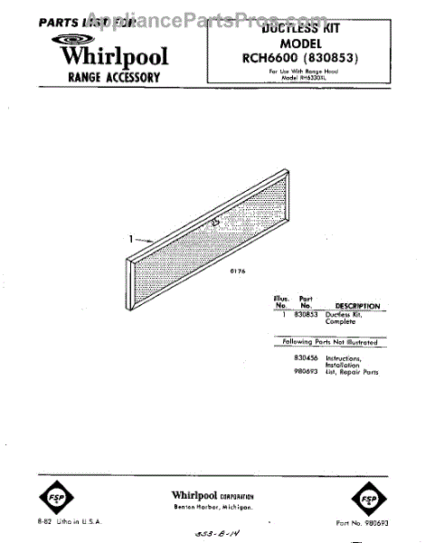 Parts for Whirlpool RCH6600: 01 - Section Parts