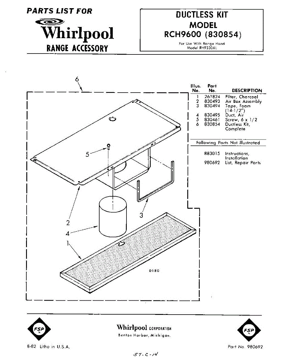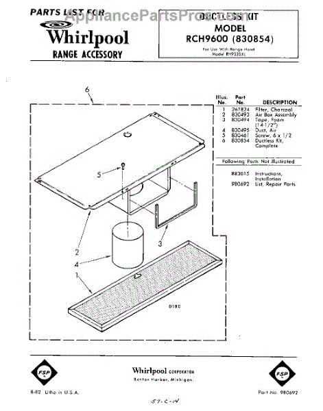 Parts for Whirlpool RCH9600: 01 - Section Parts
