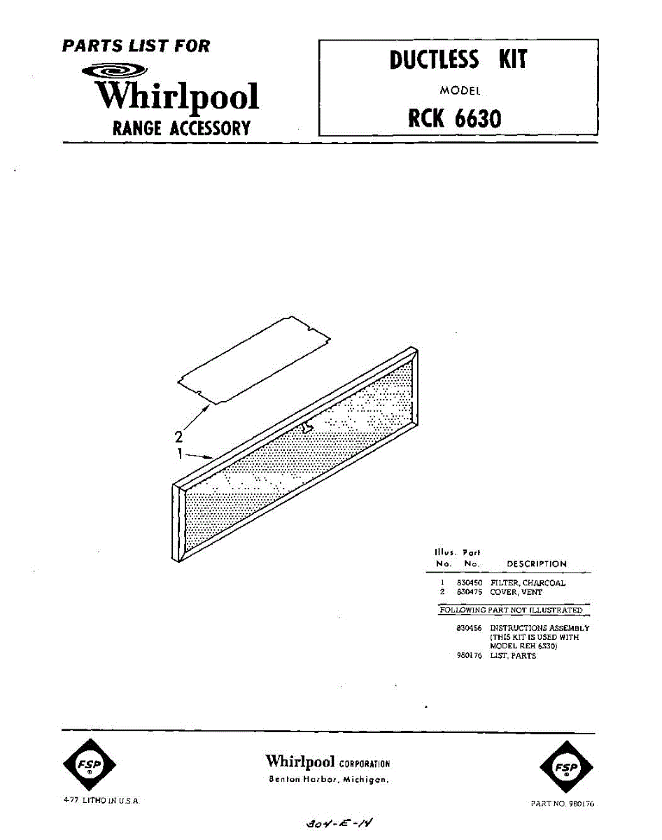 Parts for Whirlpool RCK6630: 01 - Section Parts
