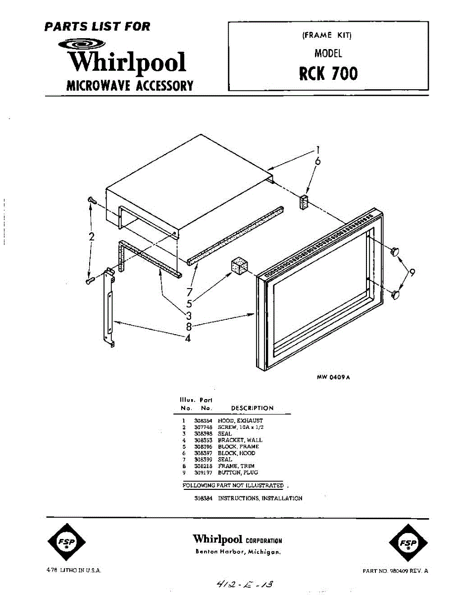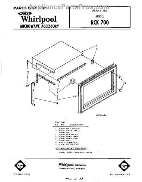 Parts for Whirlpool RCK700: 01 - Section Parts