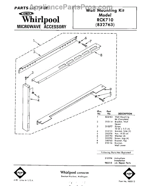 Parts for Whirlpool RCK710: 01 - Section Parts