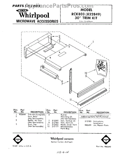 Parts for Whirlpool RCK803: 01 - Section Parts