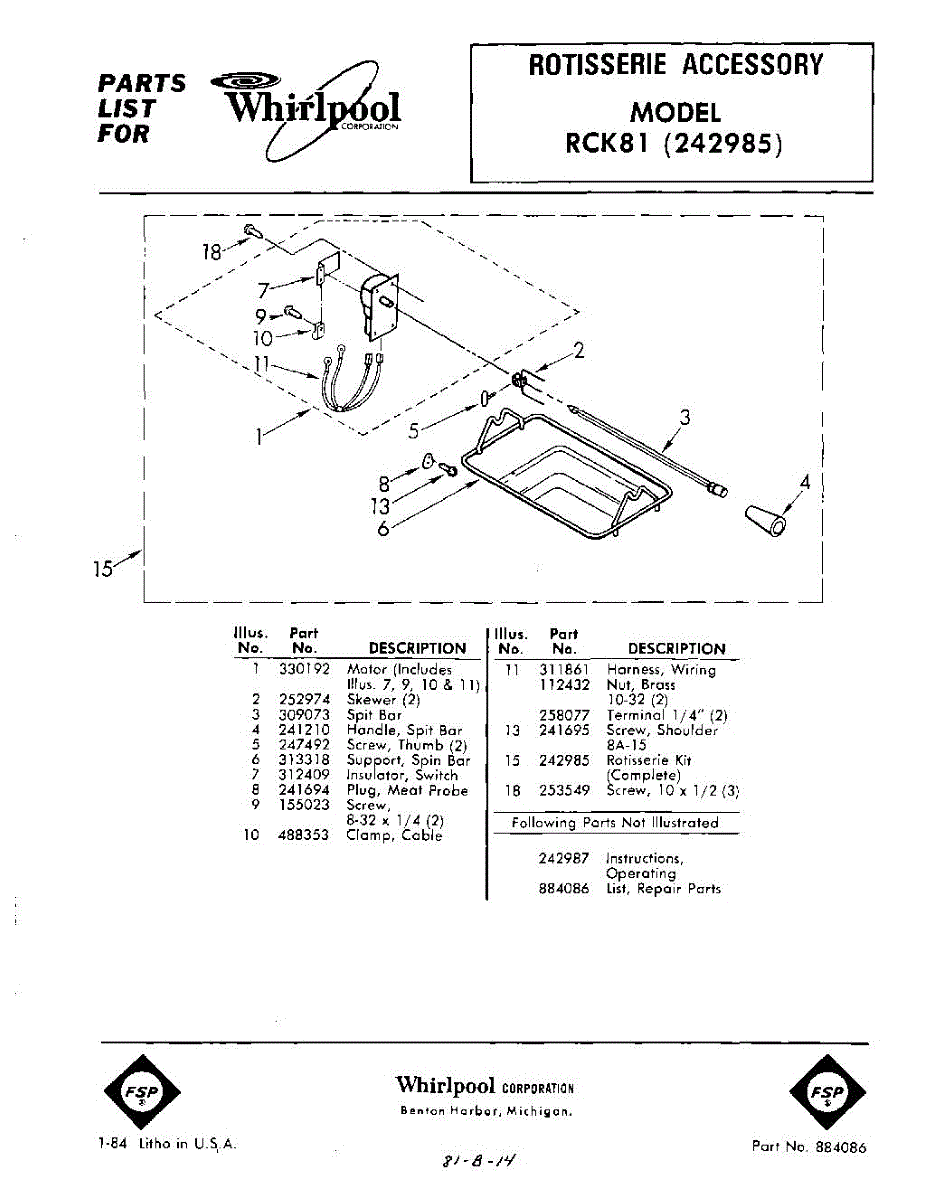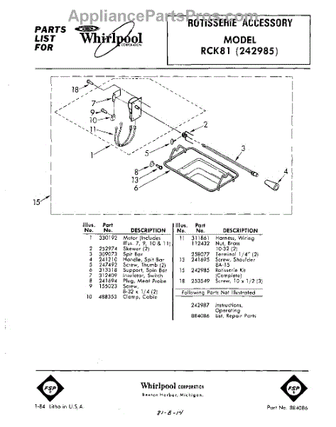 Parts for Whirlpool RCK81: 01 - Section Parts