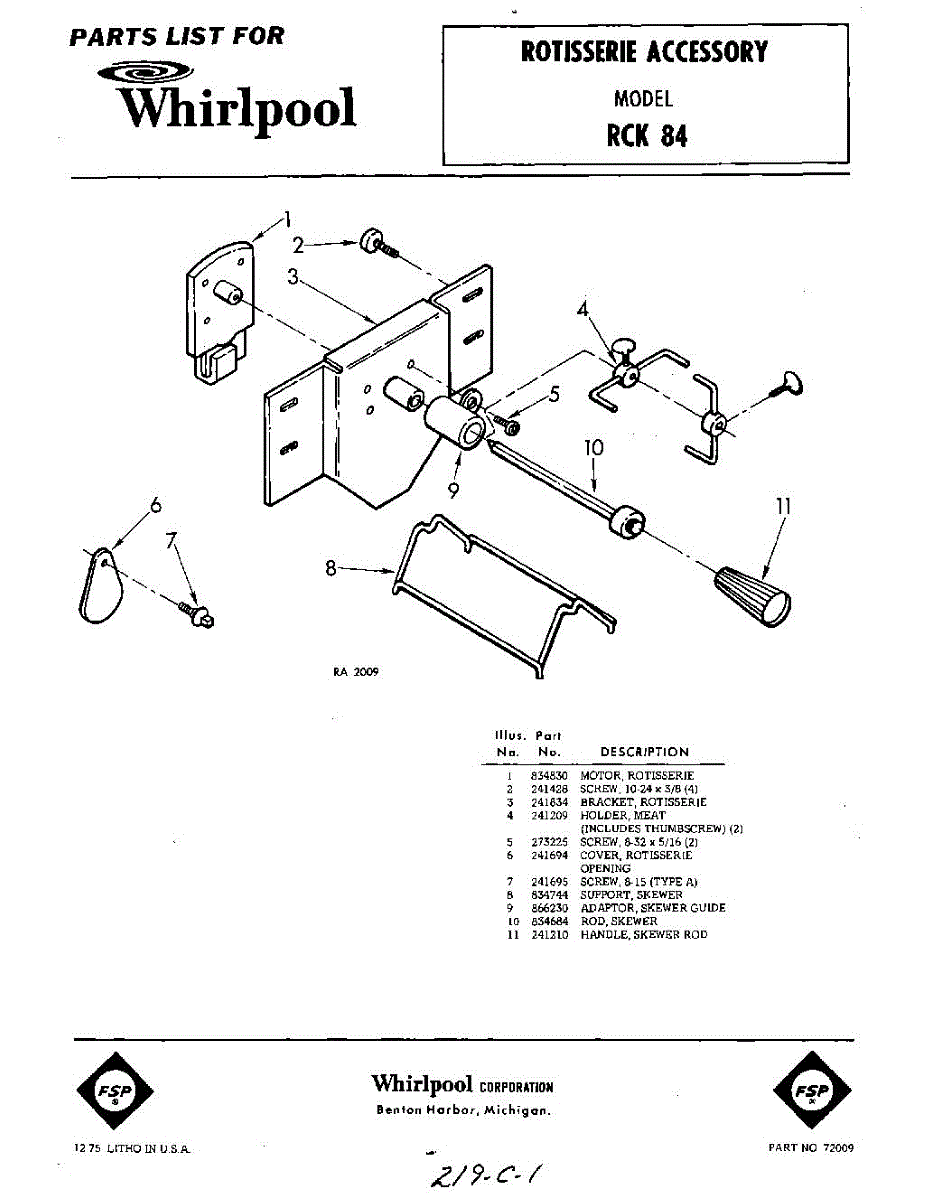 Parts for Whirlpool RCK84: 01 - Section Parts