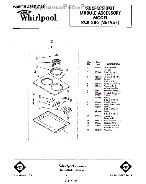 Parts for Whirlpool RCK886: 01 - Section Parts