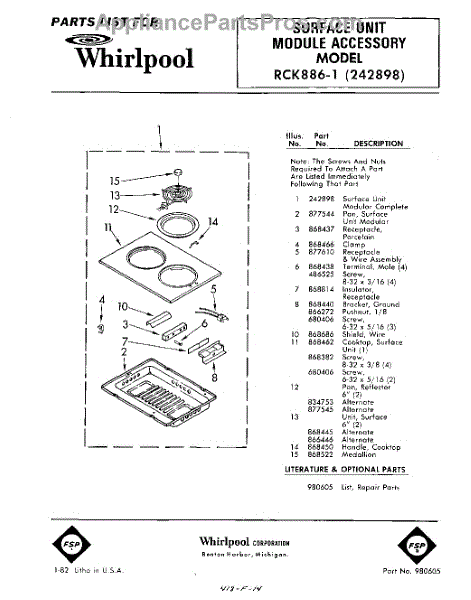 Parts for Whirlpool RCK8861: 01 - Section Parts