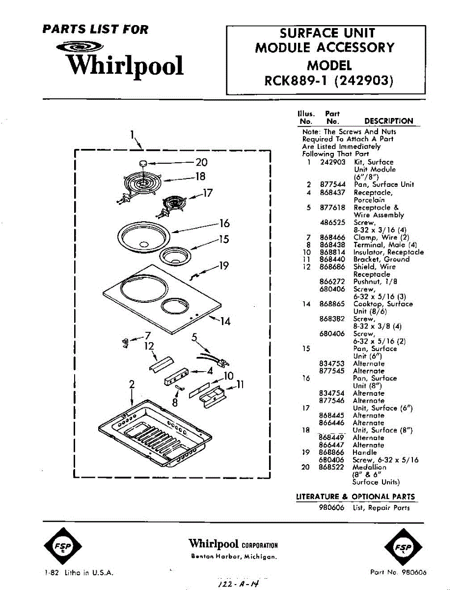 Parts for Whirlpool RCK8891: 01 - Section Parts