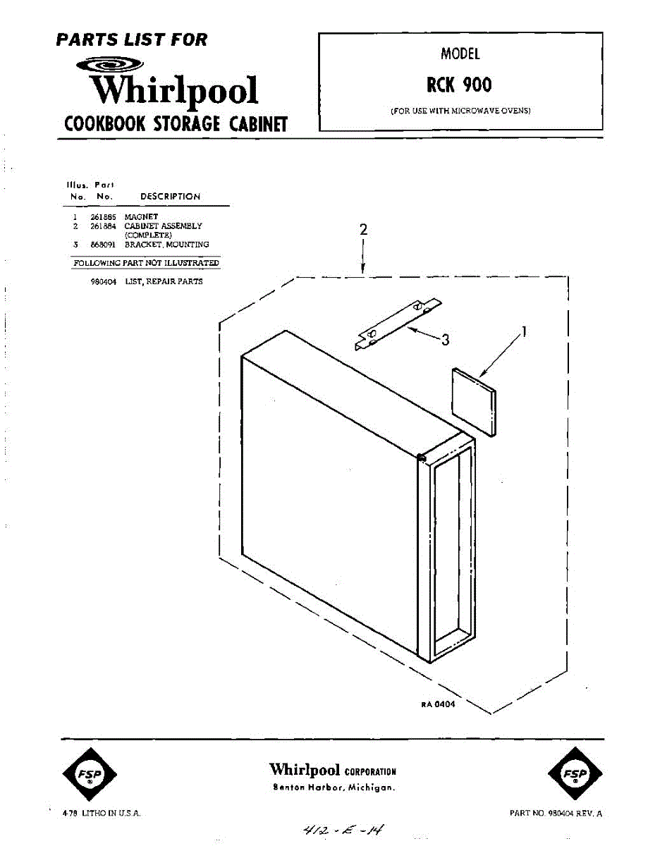 Parts for Whirlpool RCK900: 01 - Section Parts