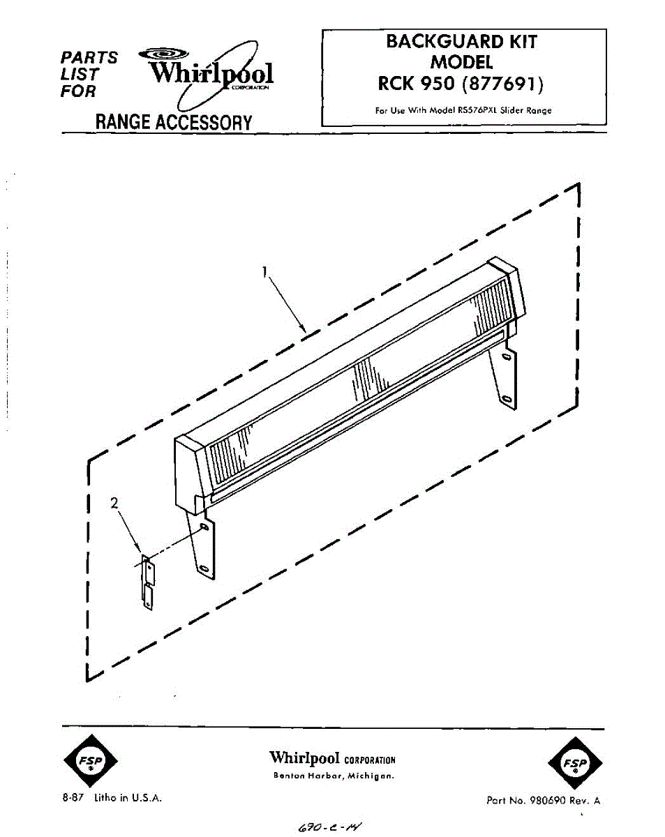 Parts for Whirlpool RCK950: 01 - Section Parts