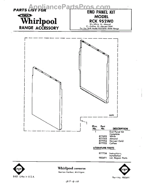 Parts for Whirlpool RCK952W0: 01 - Section Parts
