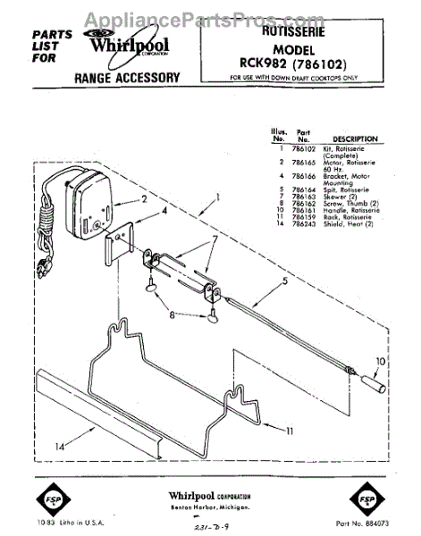 Parts for Whirlpool RCK982: 01 - Section Parts